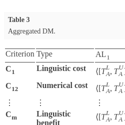 2018). In this type of problems, the criteria can be tangible or intangible. Having more intangible criteria than tangible criteria causes a harder evaluation process for experts. In this environment, MCDM methods need to determine the evaluation criteria, a set of possible alternatives, and collect the appropriate information about alternatives with respect to criteria, and to evaluate them for the decision makers’ purposes (Tzeng and Huang,