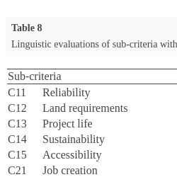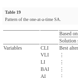 To demonstrate the stability of the ranking results, a sensitivity analysis (SA) is performed based on the weights of criteria. We develop a pattern to determine the one-at-a-time sensitivity for every sub-criterion. The values of these criteria are every linguistic term which is given in Table