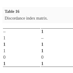 The last step is the comparison of the Concordance and Discordance index matrices. In Table