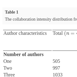 The quantitative results of collaboration intensity are presented in Table