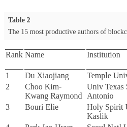 2019) constructed the collaboration network from institution and country perspective. Their research provided a comprehensive assessment of research activities in the blockchain field. Merediz-Solà and Bariviera (
