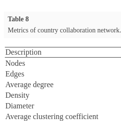 Metrics of country collaboration network.