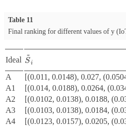 | I3 | [(0.12, 0.13), 0.16, (0.21, 0.23)] | [(0.21, 0.22), 0.24, (0.26, 0.27)] | [(0.42, 0.43), 0.46, (0.48, 0.48)] | [(0.22, 0.23), 0.26, (0.29, 0.31)] | [(0.22, 0.25), 0.33, (0.43, 0.5)] | |