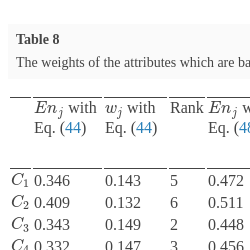 (III) When the subjectivity is not desired with the purpose of eliminating manipulation risk or when there is not enough time for data collection or when the analyst does not have the weights of any kind, the weights can be objectively calculated from the current data by referring to the methods such as entropy-based approaches or maximizing standard deviation method;