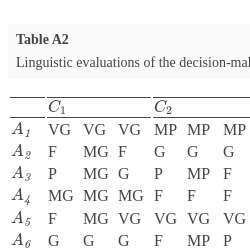 $(j=1,\dots ,n)$ via linguistic evaluations. The linguistic term set (Table