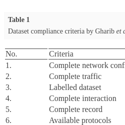 9. Heterogeneity: Data from different sources, such as network streams, operating system logs, or network equipment logs, memory images, must be available. LITNET-2020 is not compliant with this requirement.