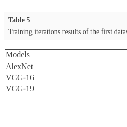In this study, we divided the image dataset into two sets, namely a training set and a validation set. For the training and validation of the three models AlexNet, VGG-16, and VGG-19, we set the number of iterations to be 1000 times.