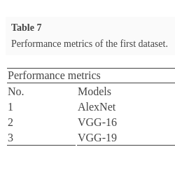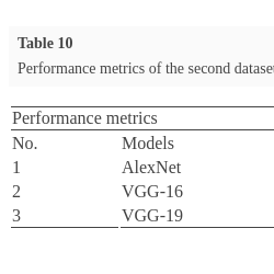 8, we present the final results of accuracy of the three models. All three models gave excellent results with the accuracy rate of AlexNet being 99.35%, the accuracy rate of VGG-16 being 99.45%, and the accuracy rate of VGG-19 being 99.5%.