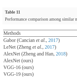 2018) proposed an AlexNet design to do palm vein image ROI extraction. We compared our approaches with the three similar methods above in terms of FAR, FRR, as well as accuracy rate, and the results are shown in Table