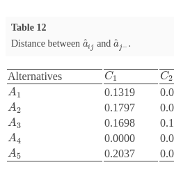 ${\bar{Z}_{5}}=((-0.0170)-(-0.7889))/(1.6403-(-0.7889))=0.3178$. The dominance degree of the ranking first alternative over second alternative is computed as
