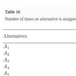 Number of times an alternative is assigned to different ranks (${P_{ik}}$).