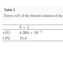 $e(\delta )$ of the discrete solution of the reduced dimension model (