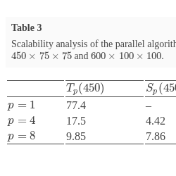As a future task, it is interesting to consider the scalability of the modified parallel algorithm from Remark 1, when the number of processes is larger than 8.