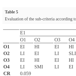 | O1 | EI | HI | EI | HI | EI | HI | SLI | VHI | EI | SMI | SLI | HI |