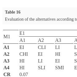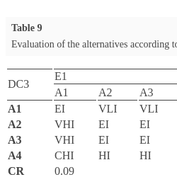 | A1 | EI | CHI | HI | HI | EI | VHI | HI | HI | EI | VHI | HI | HI |