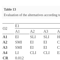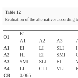 | A3 | HI | EI | EI | HI | VHI | SLI | EI | SMI | SMI | SLI | EI | EI |
