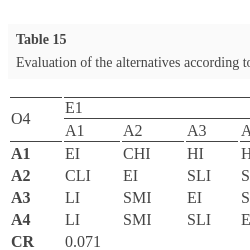 | O4 | LI | SMI | LI | EI | VLI | SLI | VLI | EI | LI | SLI | VLI | EI |