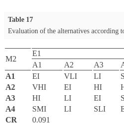 | A3 | VHI | EI | EI | LI | VHI | EI | EI | LI | VHI | SMI | EI | SLI |