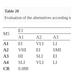 | A4 | HI | LI | SLI | EI | VHI | SLI | SLI | EI | HI | LI | SLI | EI |