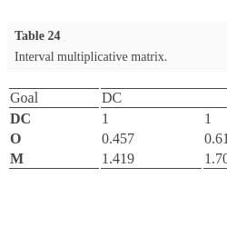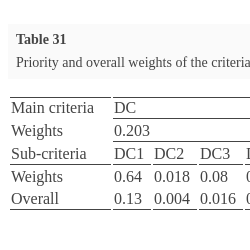 | Sub-criteria | DC1 | DC2 | DC3 | DC4 | DC5 | O1 | O2 | O3 | O4 | M1 | M2 | M3 | M4 | M5 | M6 |