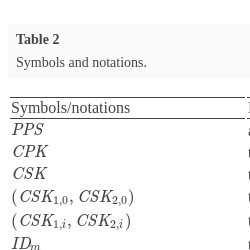 | ${\textit{ID}_{m}}$ | the identity of a member (a sender ${\textit{ID}_{s}}$ or a receiver ${\textit{ID}_{r}}$) |