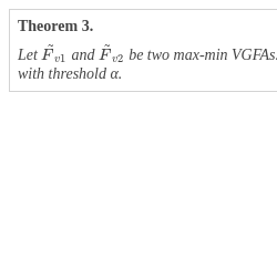 Two max-min VGFAs ${\tilde{F}_{v1}}$ and ${\tilde{F}_{v2}}$ are called equivalent with threshold α if ${\mathcal{L}^{\alpha }}({F_{1}})={\mathcal{L}^{\alpha }}({F_{2}})$, where $\alpha \in [0,1]$.