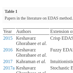 | Year | Authors | Extension of EDAS | Application area |