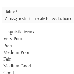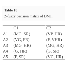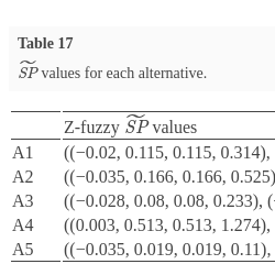 | Z-fuzzy $\widetilde{\textit{SP}}$ values | |
