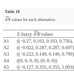 | Z-fuzzy $\widetilde{\textit{SN}}$ values | |