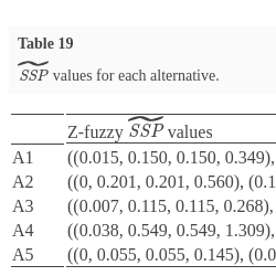 | Z-fuzzy $\widetilde{\textit{SSP}}$ values | |
