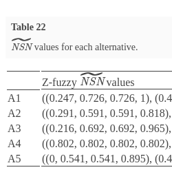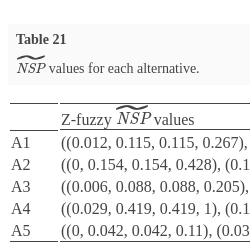 | Z-fuzzy $\widetilde{\textit{NSP}}$ values | |