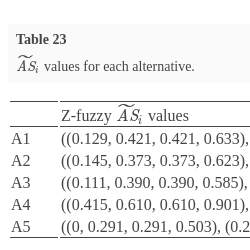 | Z-fuzzy ${\widetilde{\textit{AS}}_{i}}$ values | |