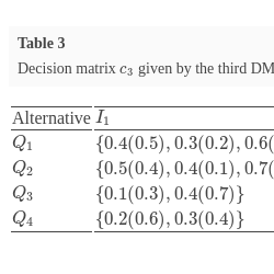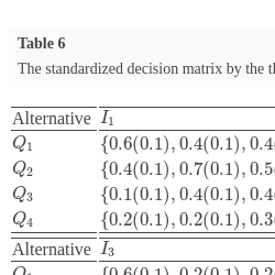 | ${Q_{3}}$ | $\{0.5(0.3),0.2(0.6),0.3(0.1)\}$ | $\{0.3(0.4),0.2(0.5),0.4(0.1)\}$ | $\{0.4(0.3),0.5(0.3),0.2(0.4)\}$ | $\{0.4(0.2),0.6(0.3),0.3(0.5)\}$ |