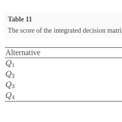Step 4. Figure out the score function of the integrated decision matrix (see Table 11).