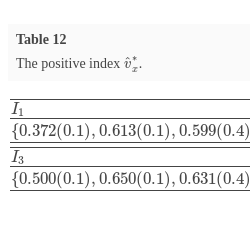 \[\begin{aligned}{}& (1)\hspace{2.5pt}{\bar{v}_{1}}({\bar{g}_{1}})\oplus {\bar{v}_{2}}({\bar{g}_{2}})=\bigcup \limits_{a=1,\dots ,\mathrm{\# }{\bar{t}_{1}},\hspace{0.1667em}b=1,\dots ,{\bar{t}_{2}}}\big\{\big({\bar{t}_{1}^{a}}+{\bar{t}_{2}^{b}}-{\bar{t}_{1}^{a}}{\bar{t}_{2}^{b}}\big)({\bar{g}_{i}})\big\};\end{aligned}\]Definition 7 (Liao et al., 2021, 2022).
