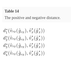 | ${d_{3}^{\ast }}({\hat{v}_{rx}}({\hat{g}_{rx}}),{\hat{v}_{x}^{\ast }}({\hat{g}_{x}^{\ast }}))$ | 0.219 | ${d_{3}^{-}}({\hat{v}_{rx}}({\hat{g}_{rx}}),{\hat{v}_{x}^{-}}({\hat{g}_{x}^{-}}))$ | 0.083 |