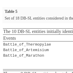 \[ \textit{DE}({T_{0}})=\{{e_{i}}/{e_{i}}\hspace{2.5pt}\text{is a DBpedia entity present in}\hspace{2.5pt}{T_{0}}\hspace{2.5pt}\text{according to DB-SL}\}.\]