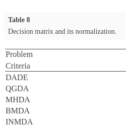 | Problem | Decision matrix | Normalized decision matrix | ||||