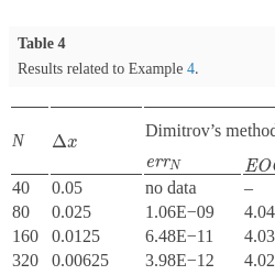| N | $\Delta x$ | Dimitrov’s method | Cubic spline | ||||||