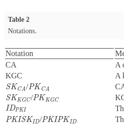 | ${\textit{SK}_{\textit{KGC}}}$/${\textit{PK}_{\textit{KGC}}}$ | KGC’s secret/public key pair |