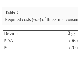 | Devices | ${T_{bil}}$ | ${T_{mul}}$ | ${T_{exp}}$ |