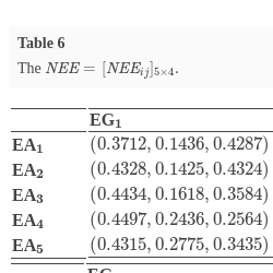 Step 2. Normalize the $\textit{EE}={({\textit{EE}_{ij}})_{m\times n}}$ to $\textit{NEE}={[{\textit{NEE}_{ij}}]_{m\times n}}$.
