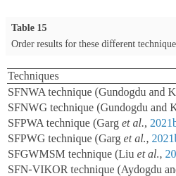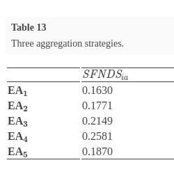 The SFN weighted averaging (SFNWA) technique and SFN weighted geometric (SFNWG) technique are used.