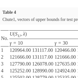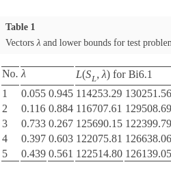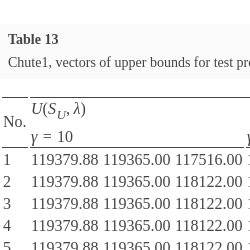 However, one can imagine version Chute3 of the Chute algorithm in which the determination of vector μ takes place in the FindUpperShell algorithm for each probing ${\lambda ^{\prime }}$ considered in it (or, e.g. for ${\lambda ^{\prime }}$ not close, in a sense, to a given λ). This, at the same time, would require adopting a reasonable time limit on optimization in the Suboptimal algorithm, as we expect many probing vectors ${\lambda ^{\prime }}$ in the FindUpperShell algorithm. This time limit could be, e.g. a fraction of time ${T^{S}}$ adopted in Chute2. Since the number of probing vectors ${\lambda ^{\prime }}$ is not a priori known, this time limit would have to be determined by some heuristic rule. It is not desirable that excessive time to determine all vectors μ be a barrier to the applicability of the proposed method.