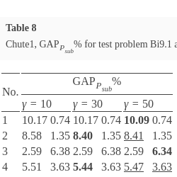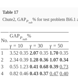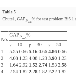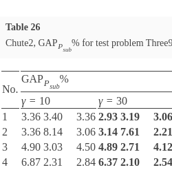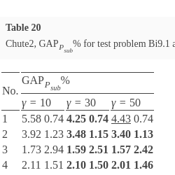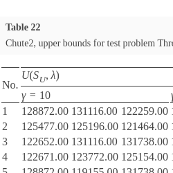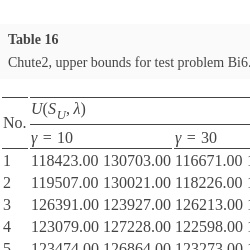 For all test instances of the MOMIP problem, with time limits set, algorithm Chute2 determines tighter upper bounds measured with the help of ${G_{{P_{sub}}}}(R({S_{L}},{S_{U}},\lambda ))$ than algorithm Chute1 in most cases. Yet, this comes at the expense of a significant increase in the computation time for deriving upper shells. So, we can observe a trade-off between the quality of the interval representation of the implicit Pareto optimal outcome for a given λ and computation time. In both the algorithms, for a given λ, tightness of upper bounds can be controlled by changing values of parameter γ. However, changing the γ value from lower to higher does not always guarantee an improvement in at least one component of ${G_{{P_{sub}}}}(R({S_{L}},{S_{U}},\lambda ))$. It may even happen that some of its components deteriorate. However, in all tested instances, when changing from the lowest to the highest value of parameter γ, no deterioration of any component of ${G_{{P_{sub}}}}(R({S_{L}},{S_{U}},\lambda ))$ has been recorded for all vectors λ.