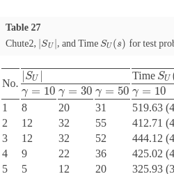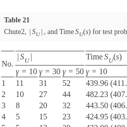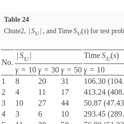 γ from 50 to, e.g. 20. Such an overarching mechanism (with a set of rules based on statistics collected during the decision-making process) for controlling the behaviour of the Chute algorithm could be useful when computation time is an important factor.