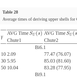 Average times of deriving upper shells for Chute1 and Chute2.