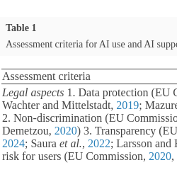 2020). With the use of AI solutions, we cede a certain decision-making capacity to software, derived from its high data processing capacity and machine learning. Therefore, transparency is present in several AI assessment models.