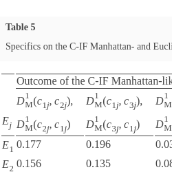 | Outcome of the C-IF Manhattan-like distances | Outcome of the C-IF Euclidean-like distances | |||||