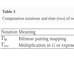 • – Discrete logarithm (DL) security assumption: For an unknown $a\in {Z_{p}^{\ast }}$, and given $a\cdot Q\in G$ or $\hat{e}{(Q,Q)^{a}}\in {G_{e}}$, to compute a is hard.